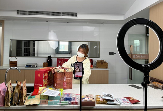 “hello寶寶們,歡迎來(lái)到我們法根糕點(diǎn)直播間。”近日,杭州市臨平職業(yè)高級(jí)中學(xué)第一期“繪夢(mèng)班”的學(xué)員吳霞在臨平年貨節(jié)現(xiàn)場(chǎng),拿起一袋糕點(diǎn),向大家介紹浙江老字號(hào)法根糕點(diǎn)上新的年貨。吳霞憑借著在課堂上學(xué)到的知識(shí)組成了團(tuán)隊(duì),參與到法根糕點(diǎn)年貨節(jié)直播中,協(xié)助企業(yè)賣貨。在臨平年貨節(jié),除了直播帶貨,繪夢(mèng)班的同學(xué)們們還錄制了探店小視頻,利用課堂上傳授的知識(shí),為法根的年貨做宣傳。