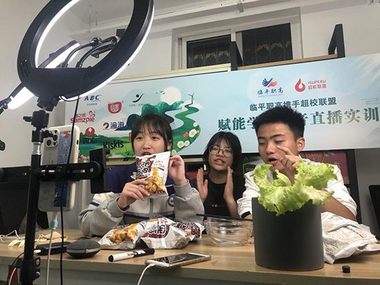 為了讓學(xué)生感受當(dāng)下電商企業(yè)的真實(shí)銷售場(chǎng)景,學(xué)校聘請(qǐng)杭州娛未文化傳媒有限公司的實(shí)戰(zhàn)專家閆程琳,為學(xué)生們開(kāi)展拍攝美食視頻的新媒體實(shí)戰(zhàn)運(yùn)營(yíng)培訓(xùn)。