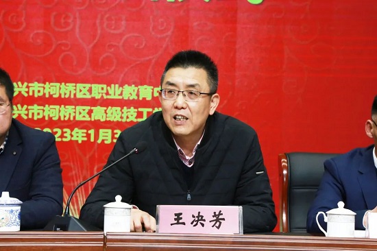 王決芳作最后講話,他代表區(qū)教體局向柯橋職教中心參賽師生表示感謝,向2022年在省賽、國賽中取得優(yōu)異成績的獲獎(jiǎng)?wù)弑硎揪匆狻M蹩崎L充分肯定學(xué)校2022年取得的成績,并提出了三點(diǎn)希望:一、提高站位,統(tǒng)一思想;二、團(tuán)隊(duì)合作,凝聚合力;三、優(yōu)化管理,確保安全。希望參賽選手堅(jiān)定信心、凝心聚力、科學(xué)備賽、勤學(xué)苦練,通過齊心協(xié)力,在2023年各級(jí)各類比賽中取得新的輝煌!( 柯橋區(qū)職業(yè)教育中心)