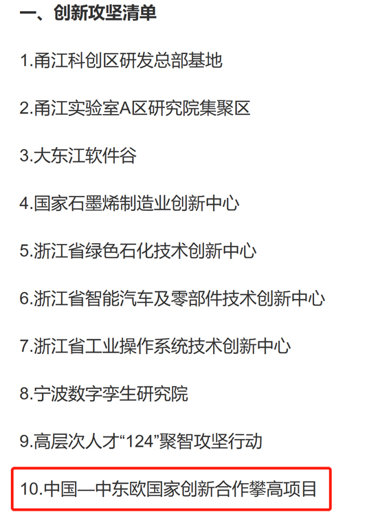 中國—中東歐國家創新合作攀高項目入選寧波市創新攻堅清單?