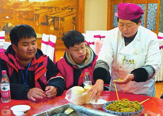 農莊里廚藝精湛的廚娘手把手地教同學們包出飽滿而又顏值高的餃子。大家也目不轉睛地學習著,生怕錯過重要一步。先拿起一張餃子皮,用筷子夾取適量的餡兒,再用手沾一點兒水,沿著餃皮涂抹,最后麻利地將餃子皮黏合在一起。哇,一只精致飽滿的餃子就這樣“誕生”了!