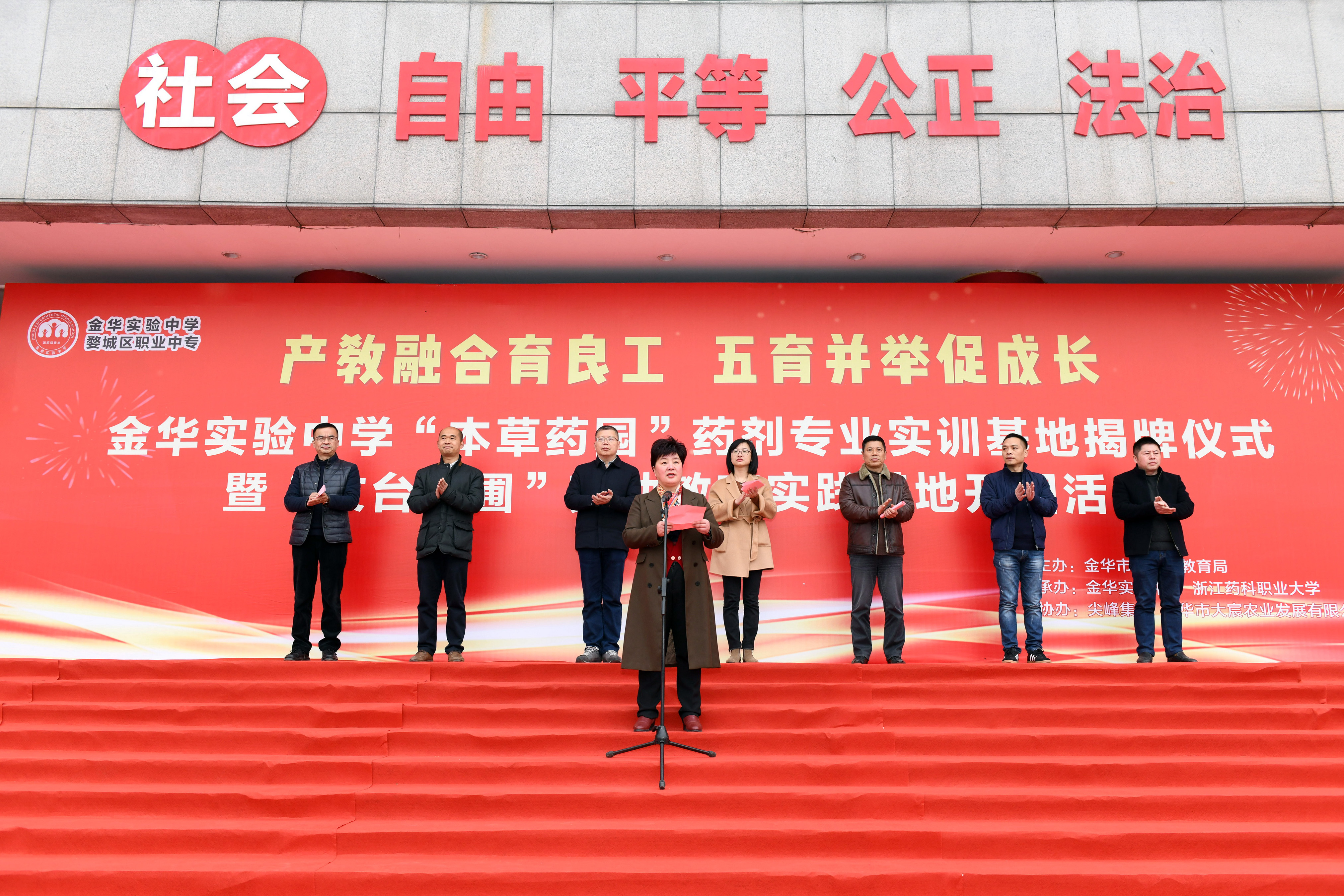 隨后,李剛宣布金華實(shí)驗(yàn)中學(xué)“本草藥園”藥劑專業(yè)實(shí)訓(xùn)基地揭牌儀式暨“文臺(tái)菜圃”勞動(dòng)教育實(shí)踐基地開園。