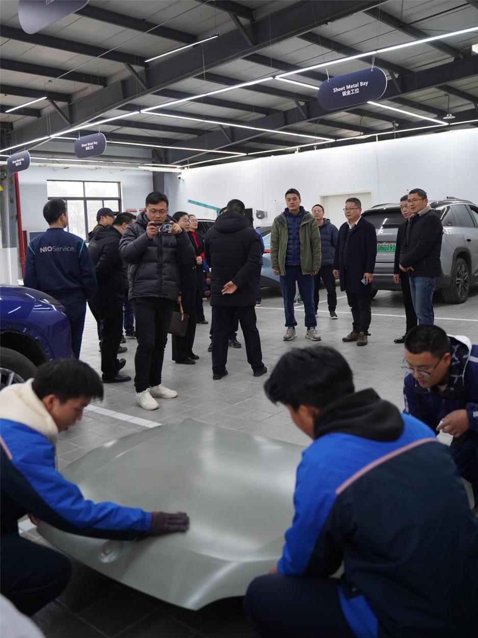 諸暨職教中心副校長(zhǎng)劉柏炎帶領(lǐng)大家重點(diǎn)參觀了新能源汽車(chē)后市場(chǎng)技術(shù)服務(wù)與創(chuàng)新中心。該中心以國(guó)產(chǎn)高端品牌“蔚來(lái)”為主導(dǎo),結(jié)合現(xiàn)代學(xué)徒制方式。技創(chuàng)中心的投入使用,讓理論+虛擬仿真+實(shí)車(chē)的“理虛實(shí)一體化”教學(xué)模式實(shí)現(xiàn)落地,學(xué)生的理論運(yùn)用和實(shí)踐技能得到明顯提升。