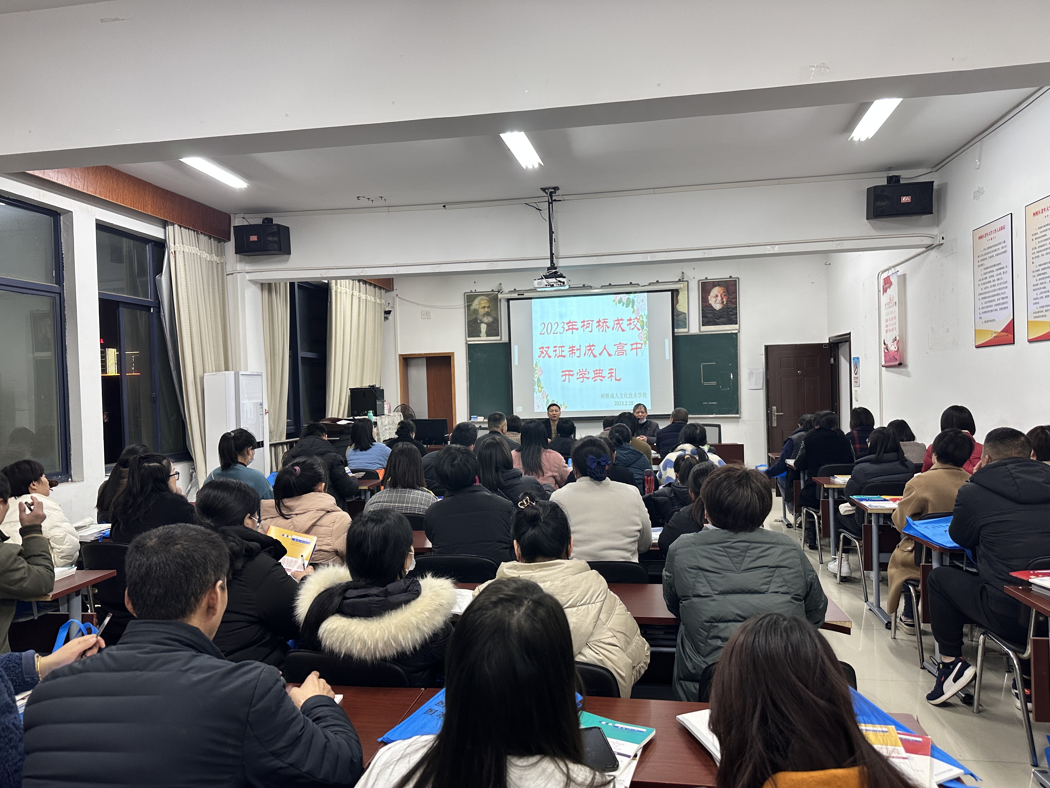 2月28日,柯橋區(qū)的130余名新老柯橋人在柯橋成校參加2023年春季成人“雙證制”高中班開班儀式。