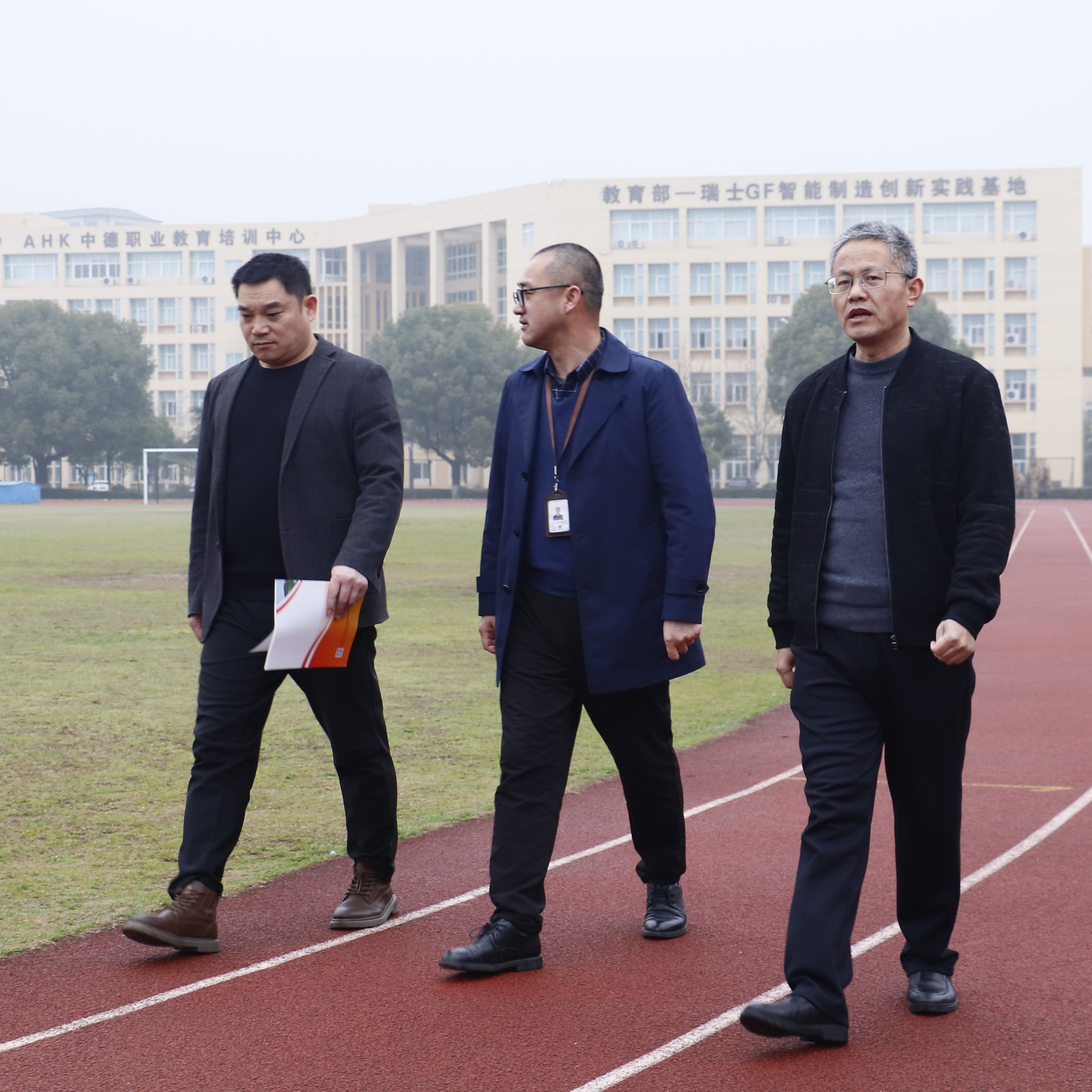 近日,山東省臨沭縣教育和體育局局長王曉峰一行到德清職業中專考察職業院校校區建設情況,副校長楊月明陪同。