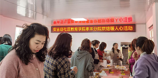 何吉豐介紹安吉縣社區教育學院孝豐分院自烘焙室交付使用以來,已經開展烘焙培訓27場,惠及學校,村、社區、企業等多個層面的人士,培訓學員1000余人。“便民、惠民的培訓已經預約了十幾場,其中烘焙有十場,插花有四場。學校根據學員需求,全體老師周末加班,為廣大學員服務好!”(黃大喜)