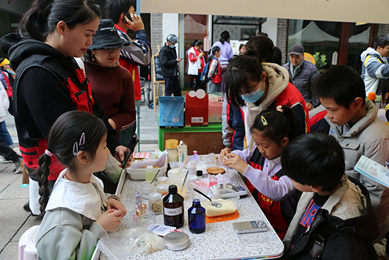 活動地點,該校設(shè)有4個志愿攤位,由四個專業(yè)部分別開展親子剪紙、科普、懸灸、愛心義賣志愿服務(wù)。
