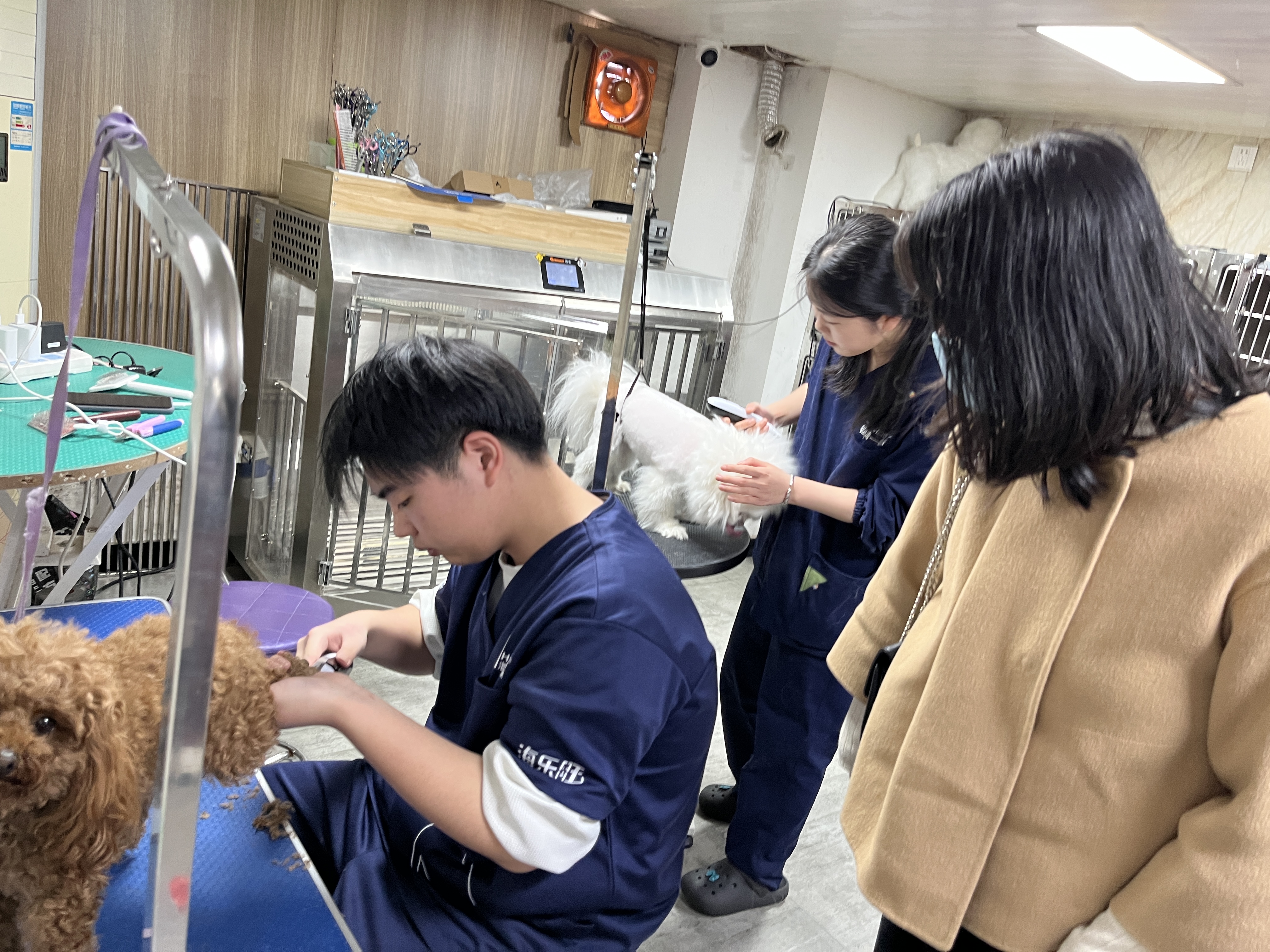 在一善寵物診療所,班主任詳細(xì)了解學(xué)生的實(shí)習(xí)情況,關(guān)注在崗學(xué)生心理和思想狀況,把學(xué)生健康和安全放在第一位。