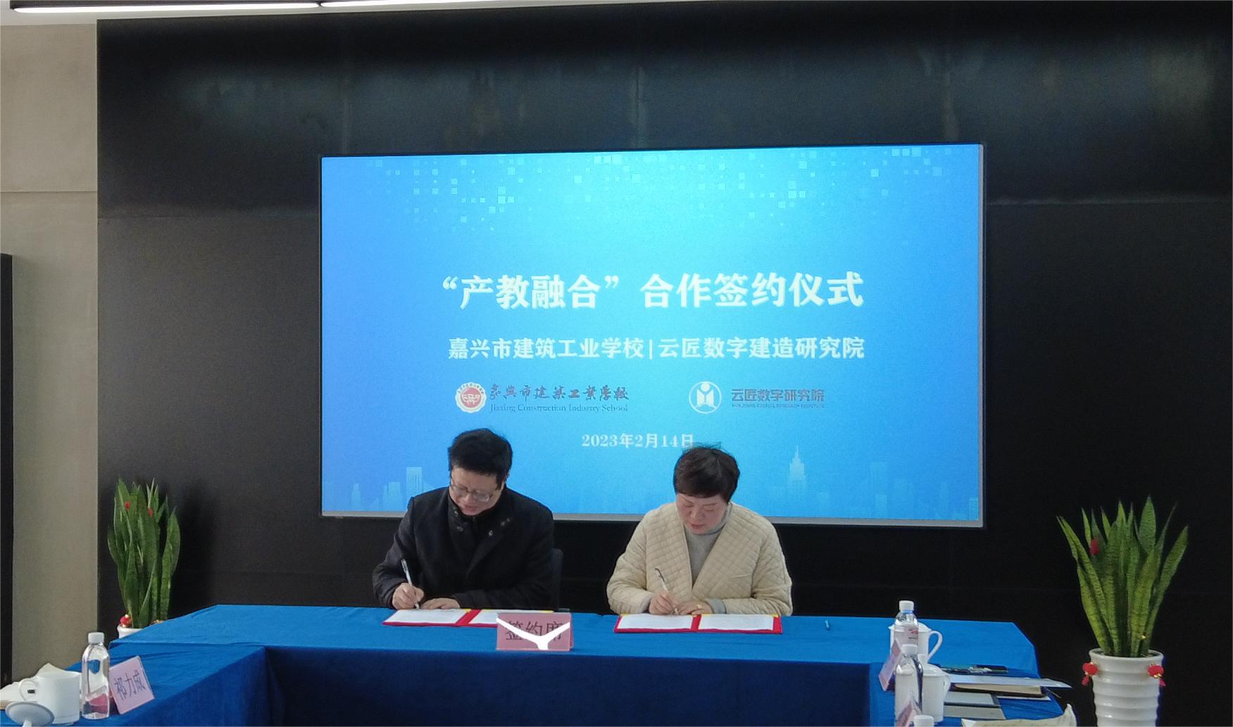 雙方簽署合作協議,完成“嘉興市建筑工業學校產教融合實踐基地”和“嘉興市建筑工業學校教師培養培訓基地”授牌儀式。