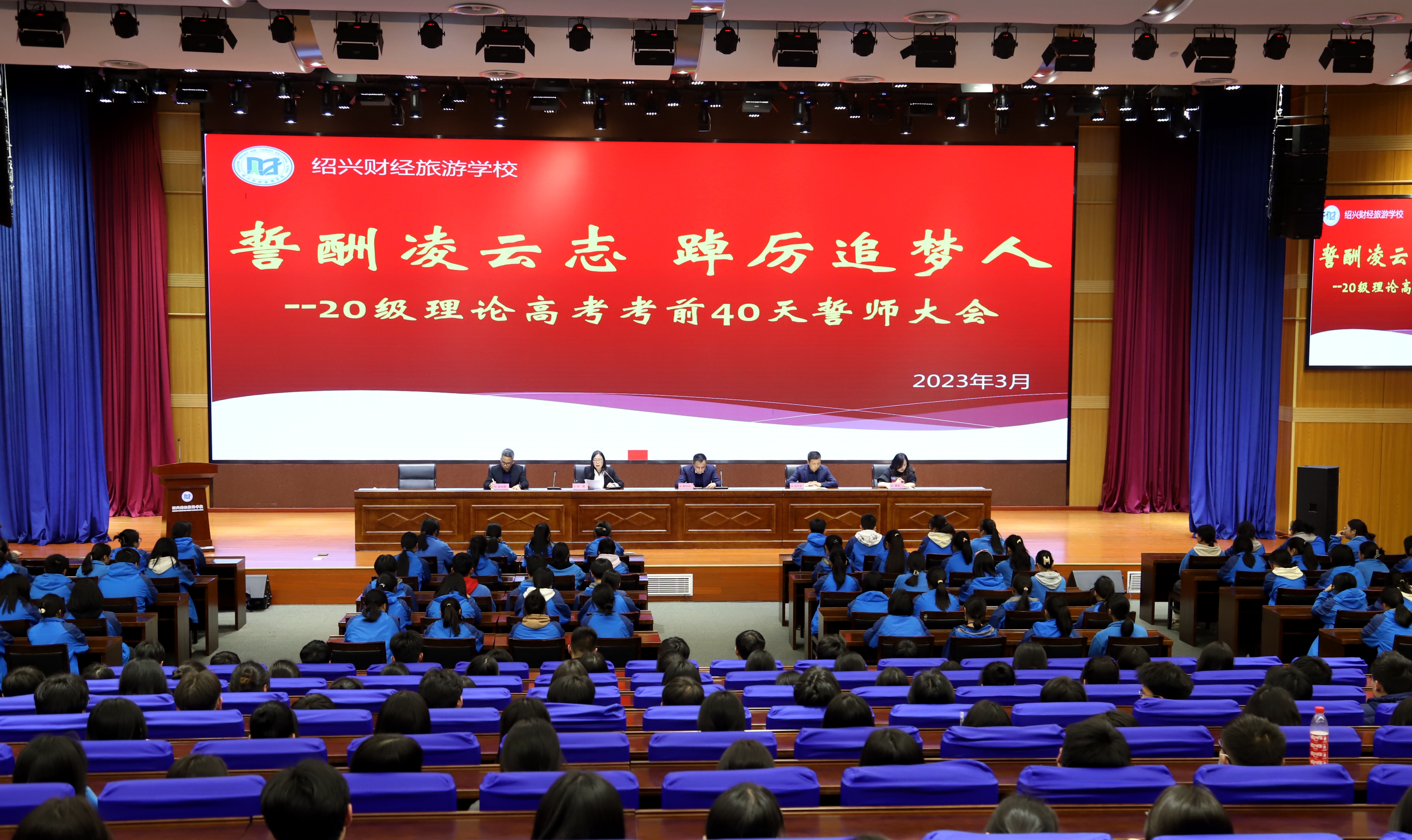 韶華不負凌云志,朝夕自度追夢人。2023年3月10日下午,紹興財經旅游學校隆重舉行2020級高考誓師大會。校長魯偉民、副校長林慧以及高三全體師生參加。