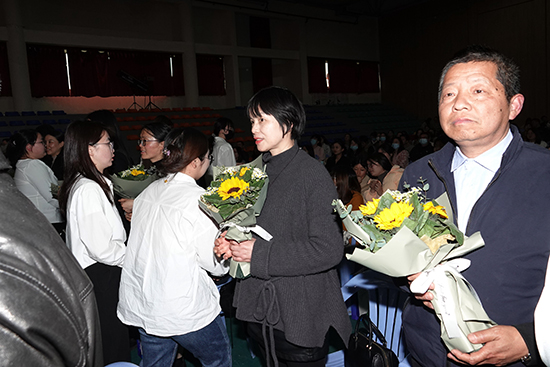 青年教師代表為各位堅守在班主任崗位30年及以上的老師們獻花,表達衷心的感謝和敬意。