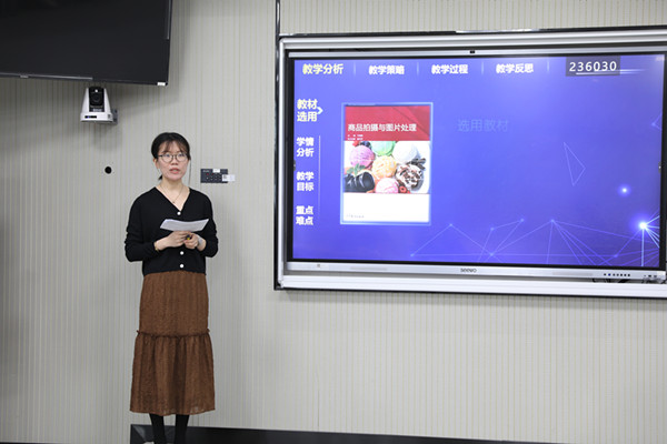 比賽過程中,戴淑老師以《運用剪貼蒙版制作電商圖》為題,以任務推動、強化技能、展示交流、反思提升的形式,利用多種教學模式,層層深入,助力學生學習;林旭環老師以《傳統色彩在客廳軟裝中的應用》為題,充分利用信息化手段,展現色彩運用的技巧,提升學生學習興趣;朱子怡老師以《設置軟文關鍵詞》為題,圍繞高效課堂,緊扣教學目標,分階段使用多元化的信息技術教學方法,探索學生高效學習方式;鐘家偉老師以《籃球雙手胸前傳接球》為主題,利用直觀教學方法,充分體現了學科特色,強化學生學習意識。參賽教師根據學情,合理創設生活與職業情景,教學目標清晰且落實到位;基于教學內容的需要,選擇合理教學方法,采用有效的教學策略,也能在設計上大膽創新,做到立意新穎,構思獨特。同時,將前沿的教學理論大膽實踐,學科項目化貫穿教學過程的始終,充分展現了熱情飽滿的教學態度和個性鮮明的教學風格,構建了富有創意的教學設計和新穎生動的教學情境。