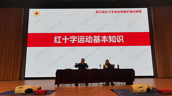 開班儀式上,國家電網湖州供電公司電力醫生、浙江省紅十字一級應急救護培訓師閔華為全體學生作理論培訓。他結合大量真實案例,以場景模擬、互動教學、親身體驗等多樣化的模式,圍繞心肺復蘇、異物梗住、燒燙傷處理、創傷包扎等內容進行詳細講解,幫助大家在遇到突發事件時能夠準確迅速采取有效急救措施,提高風險防范意識,增強自救互救能力。后續,湖州市紅十字會也會派志愿者為畢業班級進行實操培訓,所有學生將會參加嚴格的應急救護知識及技能考試,最終成為一名合格的救護員。