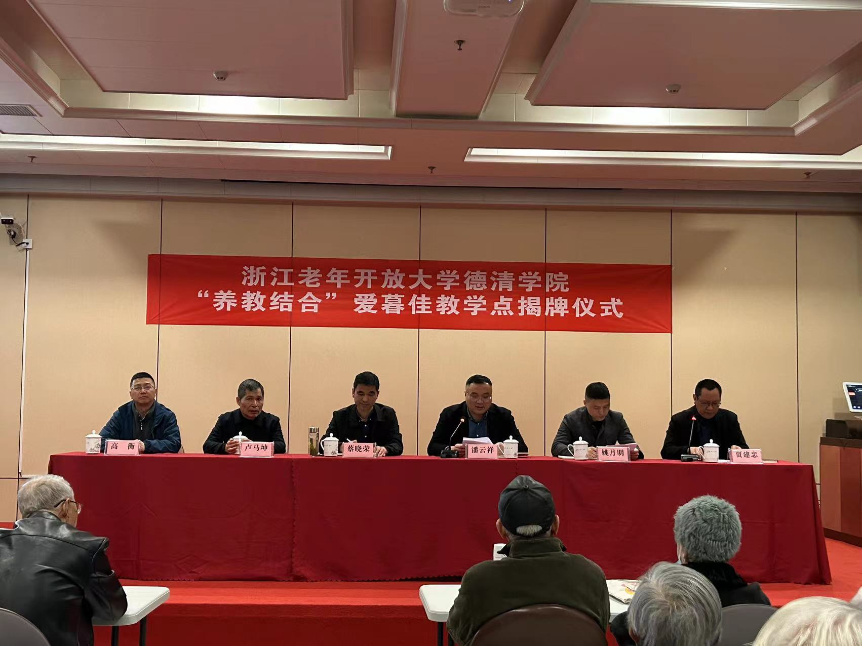 揭牌儀式上,潘云祥首先致辭。他表示,愛暮佳作為德清學(xué)院老年教育“養(yǎng)教結(jié)合”項目的首個試點單位,標(biāo)志著德清縣在推進(jìn)老年教育向更深層次、更高水平、更加普惠發(fā)展上有了新的突破。教學(xué)點要圍繞“增長知識、豐富生活、陶冶情操、促進(jìn)健康、服務(wù)社會”的辦學(xué)宗旨,堅持正確的政治方向和面向大眾辦學(xué)指導(dǎo)思想,堅持靈活的授課方式,滿足老年朋友“求知、求新、求樂”的愿望,切實成為老年人更新知識的平臺、文化娛樂的陣地、延年益壽的樂園。