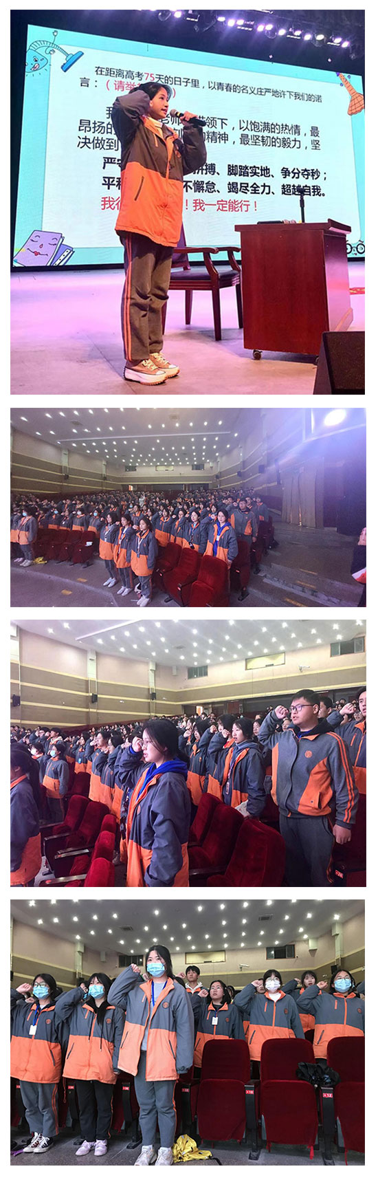 在王佳文同學(xué)的帶領(lǐng)下,全體學(xué)生進(jìn)行了莊嚴(yán)的宣誓:“我們將在老師的帶領(lǐng)下,以最昂揚(yáng)的斗志,最刻苦的精神,堅(jiān)決做到嚴(yán)守紀(jì)律、奮力拼搏、腳踏實(shí)地、平和心態(tài)、永不懈怠、竭盡全力……我行!我能行!我一定能行!”整齊的宣誓聲響徹整個(gè)演出廳,學(xué)子們心中充滿(mǎn)了前行的力量。