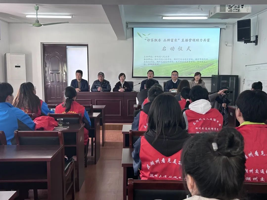 為深入貫徹落實省市區共同富裕建設工作決策部署,深入實施鄉村振興戰略,扎實推進“共富妙西”共建試點,3月28日,湖州“共富”職教中心與妙西鎮人民政府共同組織開展了“妙茶飄香”直播營銷助力共富活動。浙江信息工程學校·湖州工程技師學院、浙江省湖州藝術與設計學校、湖州市現代農業技術學校、湖州交通技師學院、吳興區社區教育學院、妙西鎮成校等中心成員單位組織志愿者團隊超50人參與活動。