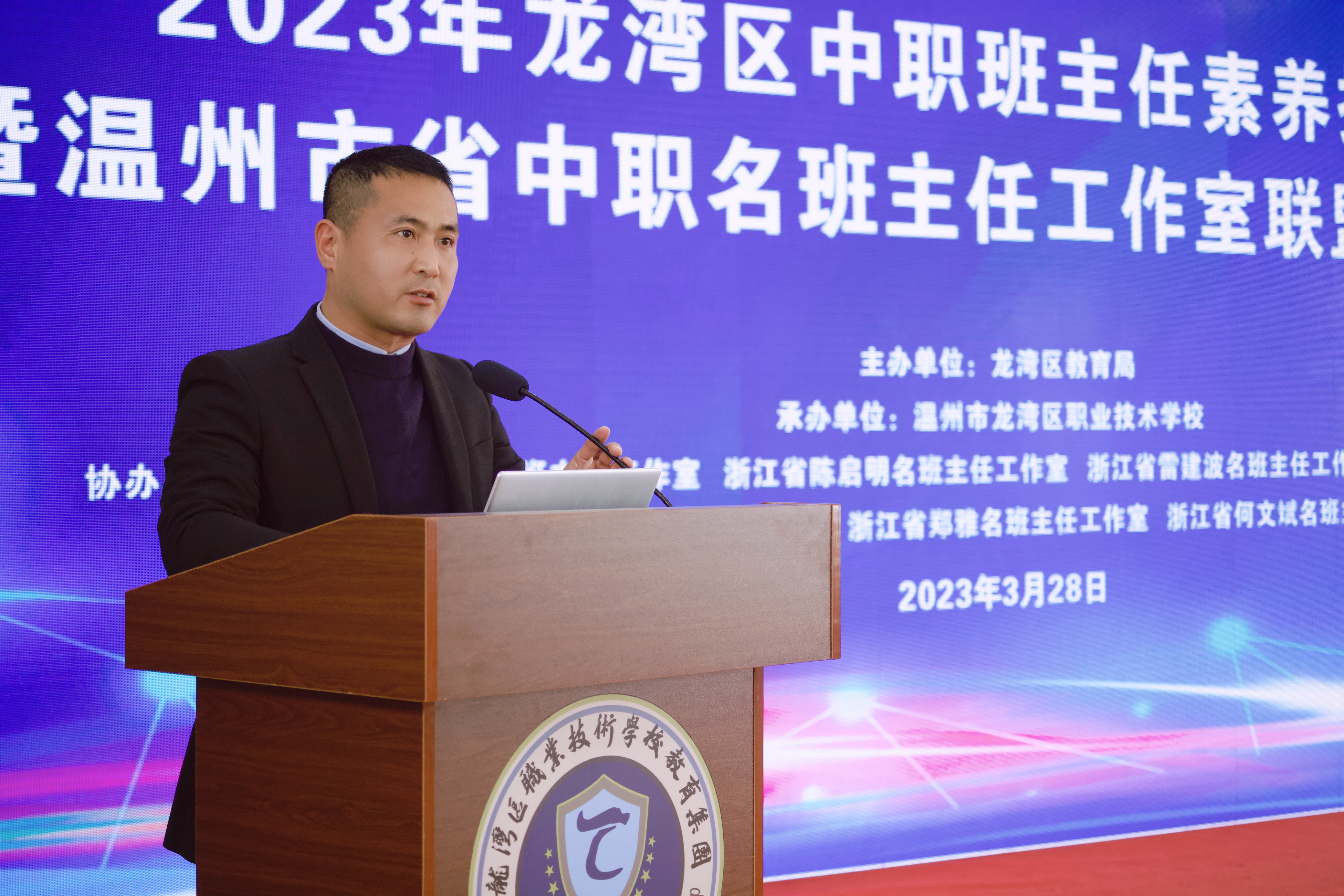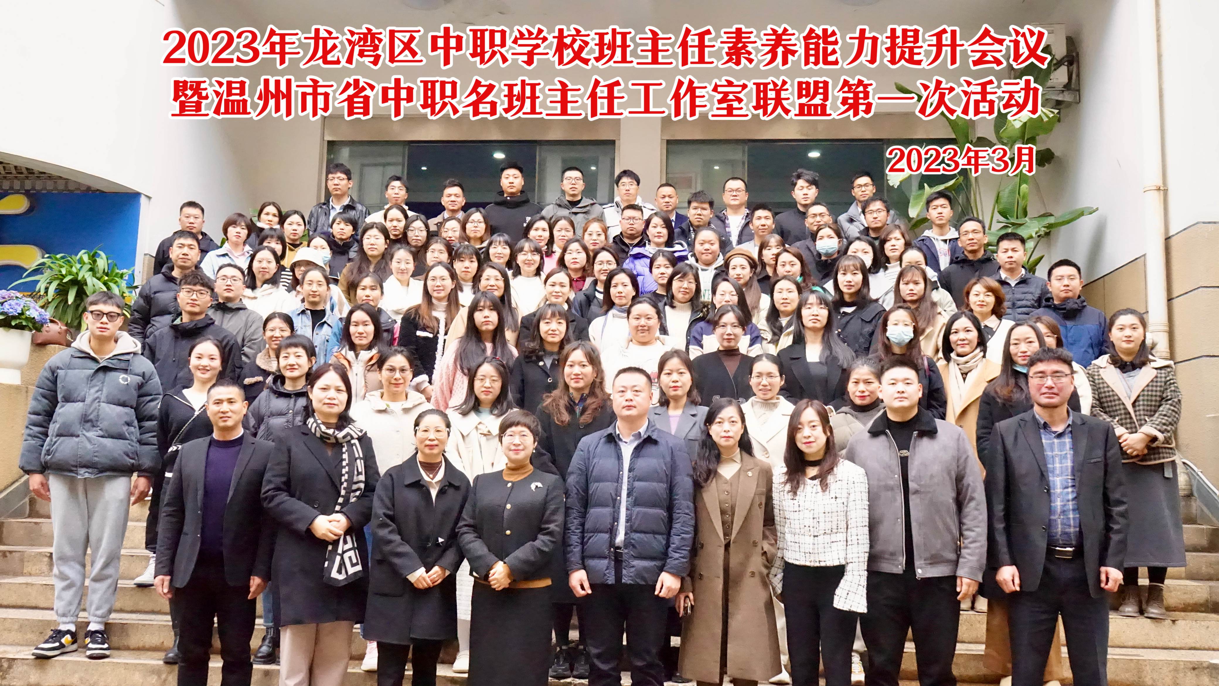 3月28日,2023年龍灣區中職班主任素養提升會議暨溫州市省中職名班主任工作室聯盟第一次活動在溫州市龍灣區職業技術學校隆重舉行。各中職學校德育校長、政教主任及名班主任工作室主持人等150余人參加了本次活動。龍灣區教育局黨委委員陳良、溫州市教育教學研究院中職德育教研員周麗芳出席并作講話。