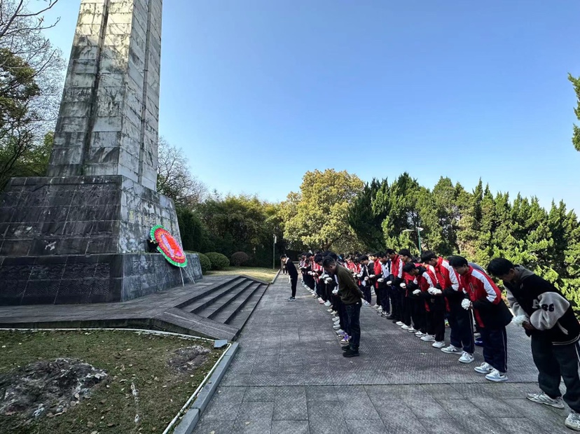 第一站來到了海寧市革命烈士陵園。全體師生向革命烈士紀念碑三鞠躬、默哀致敬,并獻上了同學們親手制作的紙花。全體師生團員在紀念碑前重溫入團誓詞,不忘入團初心使命。隨后,師生們一起進入研學基地——革命烈士事跡陳列館參觀學習,近距離了解革命烈士們的英雄事跡,引導同學們慎終追遠、緬懷先輩,銘記歷史,把個人理想追求融入實現中國夢的共同奮斗之中,不斷增進熱愛祖國、熱愛人民、熱愛中華民族的情感。
