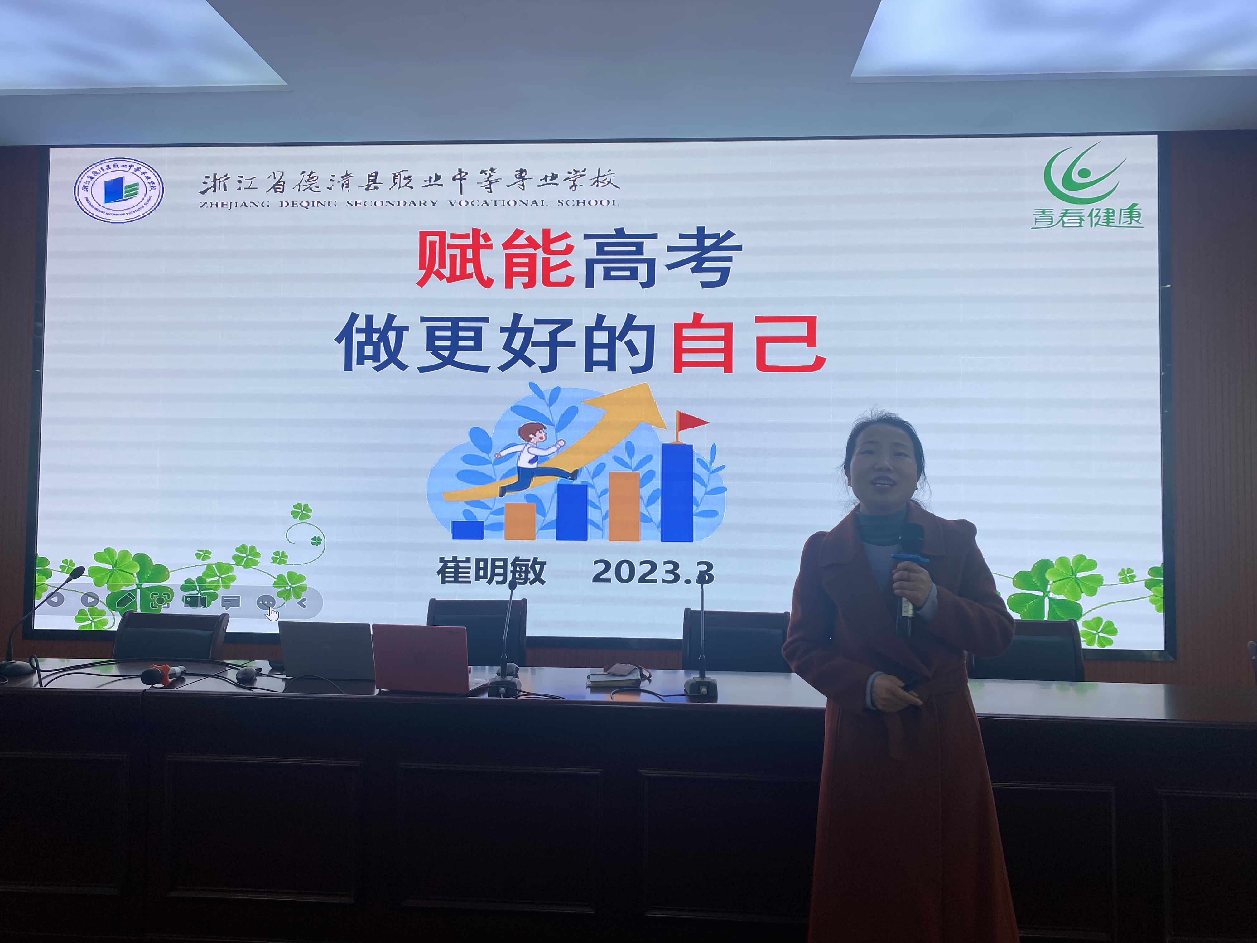 中職技能理論高考即將來臨,為有效緩解學生考前心理壓力,調整學生的心理狀態,增強學生的自信心,德清職業中專開展了高三考前心理輔導活動。此次活動由融通學院副院長楊芬老師主持,由學校心理老師崔明敏主講,部分高三班級聽取了此次講座。