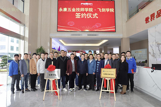 繼三月底在首屆八婺金匠創(chuàng)新交流大會(huì)上與浙江飛劍工貿(mào)有限公司(以下簡(jiǎn)稱(chēng)“飛劍工貿(mào)”)簽約以來(lái),4月6日下午,永康五金技師學(xué)院與飛劍工貿(mào)進(jìn)一步簽訂了校企戰(zhàn)略合作協(xié)議并成立企業(yè)學(xué)院——“飛劍學(xué)院”。同時(shí)成立的還有旗下“飛劍杯壺研究院”,這也是永康市杯壺行業(yè)的首個(gè)研究院。