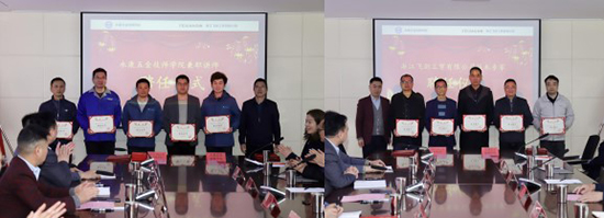 永康五金技師學(xué)院當(dāng)場(chǎng)聘任飛劍工貿(mào)的5位技術(shù)專(zhuān)家擔(dān)任“技師學(xué)院兼職講師”。飛劍工貿(mào)則聘請(qǐng)了五金技師學(xué)院的5位博士或?qū)I(yè)骨干教師擔(dān)任“飛劍工貿(mào)技術(shù)專(zhuān)家”。