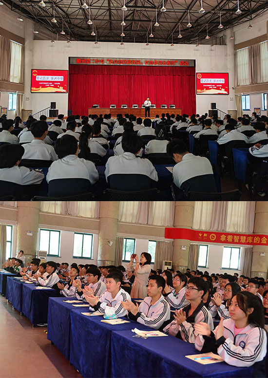 江山市關(guān)愛退役軍人協(xié)會(huì)會(huì)長(zhǎng)曹建敏作為一名退役軍人,始終心系退役軍人和家鄉(xiāng)建設(shè),被評(píng)為衢州市退役軍人就業(yè)創(chuàng)業(yè)導(dǎo)師、衢州市首屆“十佳退役士兵”。他以“銘記歷史 振興中華”為主題,講述了在中國(guó)共產(chǎn)黨領(lǐng)導(dǎo)下中國(guó)人民從近代史任人踐踏,到“站起來”,擁有了國(guó)家主權(quán),到“富起來”,人民安居樂業(yè)奔小康,到“強(qiáng)起來”,擁有話語權(quán),一個(gè)又一個(gè)偉大飛躍的英雄壯舉,他說:“不要小看自己,每個(gè)人都是英雄。”借此,他希望同學(xué)們銘記歷史、不忘國(guó)恥,為實(shí)現(xiàn)中華民族偉大復(fù)興中國(guó)夢(mèng)而努力奮斗。