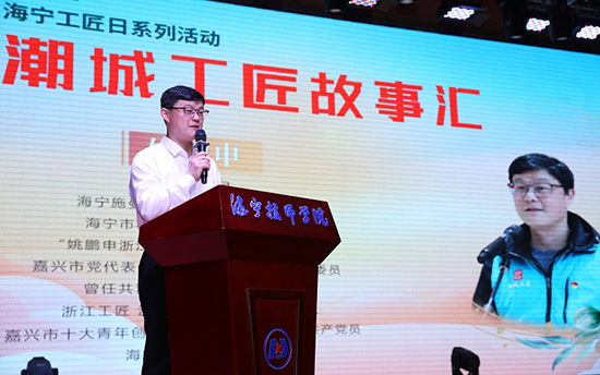4月18日上午,由潮城工匠政協委員會客廳、海寧市教育局及海寧技師學院聯合舉辦的“海寧工匠日”系列活動之“潮城工匠故事匯”,在沈鴻紀念館800人報告廳順利舉行。四位來自制造業領域的技能大師、工匠在現場講述了他們奮斗成長、技能立身的故事,海寧技師學院智能制造系學生代表700余人到場聆聽。