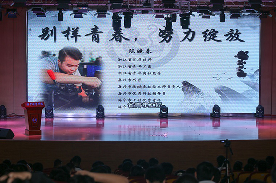 由于公出在外,無法來到現場,陳曉春老師通過視頻分享了自己從年少叛逆到潛心鉆研技術、教導學生的四個階段。作為一名曾經的技校學生,他的經歷令同學們倍感熟悉。他期盼著大家也能和他一樣,堅定理想信念,苦練專業本領,不負青春韶華。