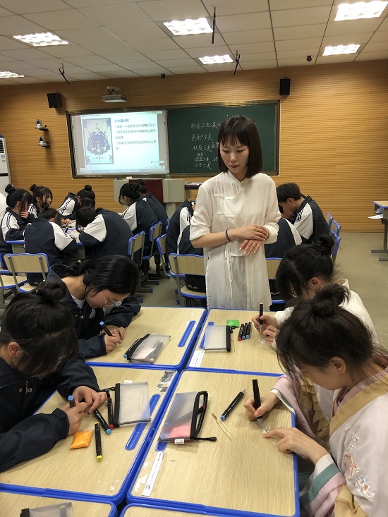 4月20日下午至4月21日上午進行優質課評比活動。來自不同縣市的六位優秀教師精心備課、用心研磨、積極探索、各展所長。龍泉中職校季瑋瑋老師帶來《點翠之美》。季老師通過合作探究點翠工藝的色彩之美、造型之美、材質之美、工藝之美,引導學生感受傳統工藝的精美絕倫。遂昌中職校的雷紫譽老師帶來《沉雄瑰麗的中國青銅藝術》。雷老師帶領同學們通過自己的雙手對衣服、袋子進行簡單的裝飾,以此來感受瑰麗的青銅紋樣。