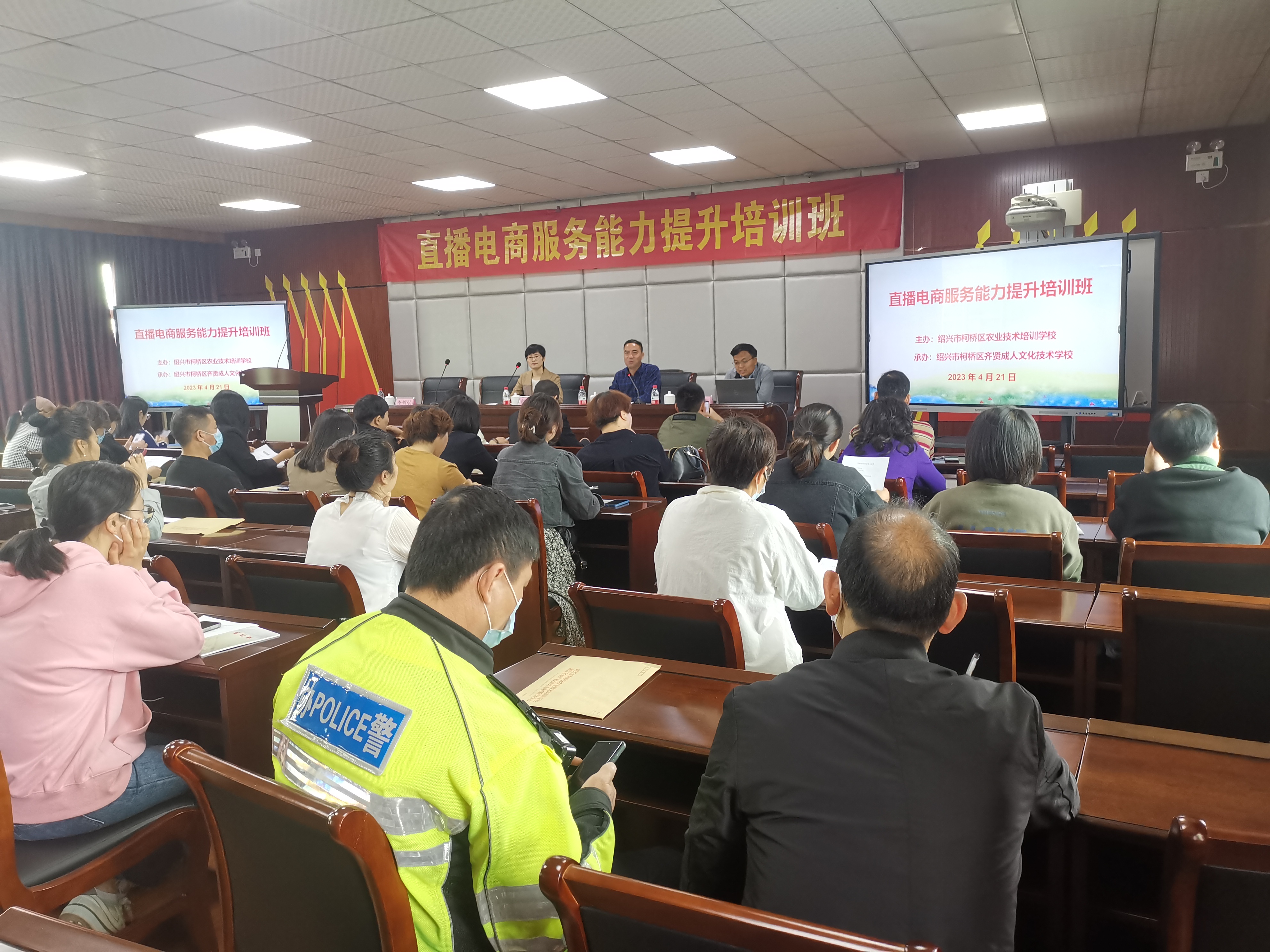 4月21日,紹興柯橋齊賢成人文化技術學校四樓多功能教室內,70位來自齊賢街道各村居的電商學員參加了直播電商服務能力提升培訓班開班典禮。開班典禮由齊賢成人文化技術學校校長馮明海主持并作宣傳動員,柯橋區農業技術培訓學校副校長錢英宣布培訓計劃、強調學習要求。