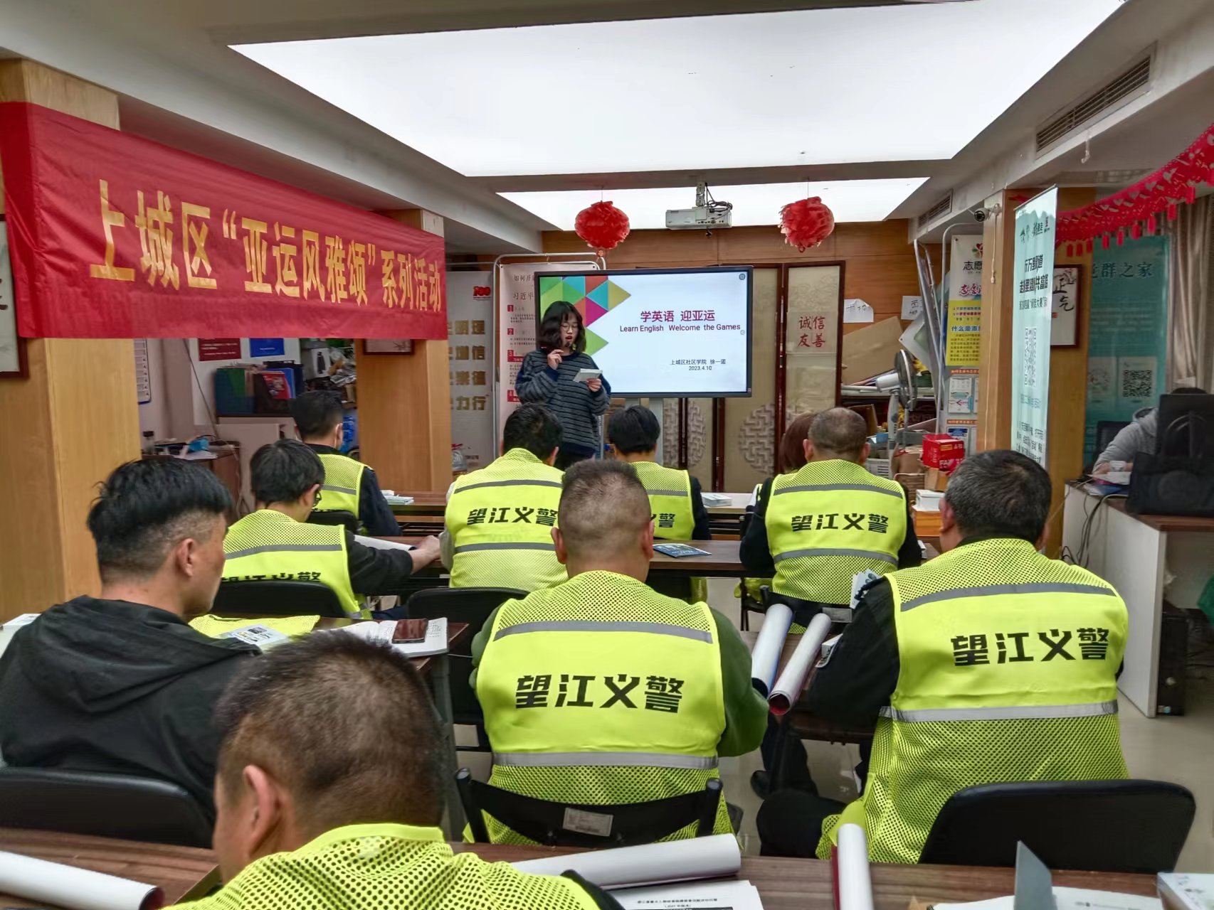 4月10日下午,在清泰門社區(qū)市民學校,來自上城區(qū)社區(qū)學院的實習生徐一諾面向義警進行了亞運英語的教學。通過本次培訓,隊員們在英語口語上得到了很大提升,將更好的為國際友人提供服務,為杭州亞運會助力添彩。