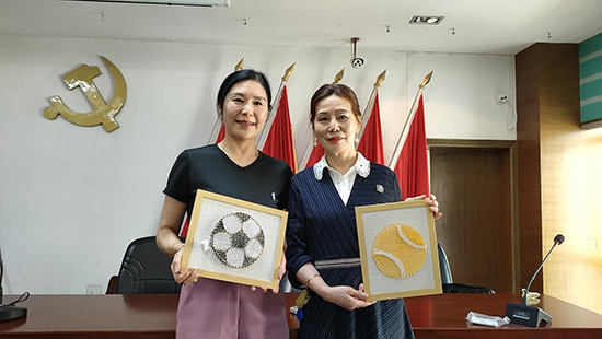 隨后,結(jié)合課上學習到的英語體育項目單詞,普福社區(qū)文教干部還開展了釘子畫手工活動。