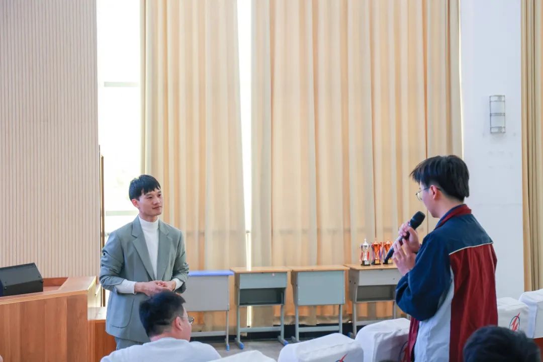 分享會后,學(xué)生們反應(yīng)熱烈,積極向蔣老師提問,他都耐心地一一解答。包括:基本的汽車噴漆、可持續(xù)學(xué)習(xí)、相關(guān)比賽等等。老師們則向他請教了專業(yè)課教學(xué)問題。