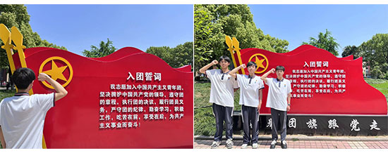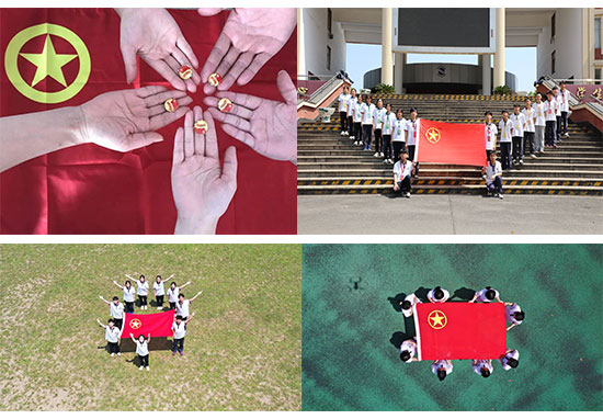 團(tuán)員青年與團(tuán)旗合影,團(tuán)員們紛紛亮出身份,在團(tuán)旗的映襯下,同學(xué)們顯得尤其朝氣蓬勃,展現(xiàn)出新時(shí)代青年風(fēng)采。