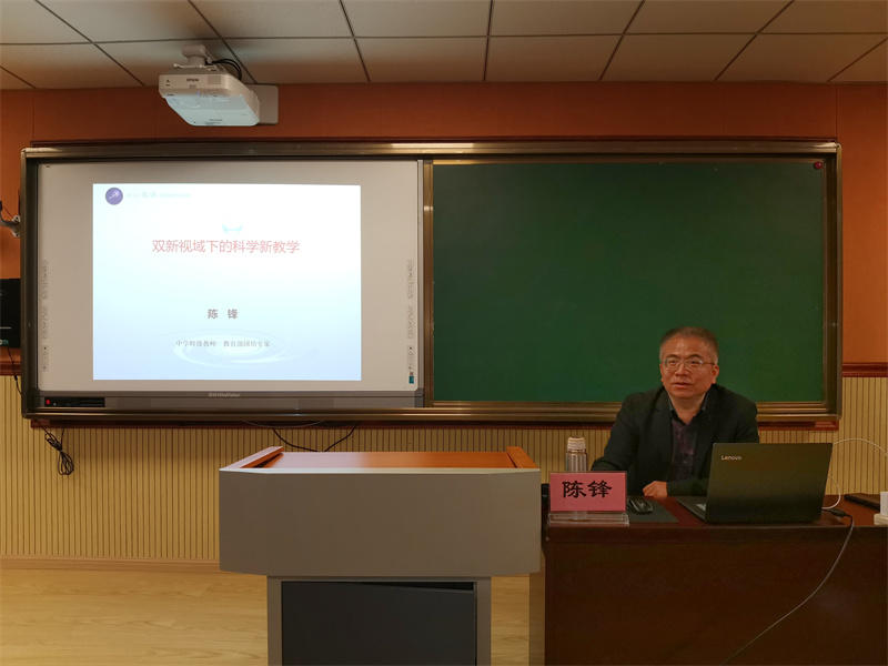 杭州市錢塘區(qū)教師教育學(xué)院院長、浙江省特級教師陳鋒作《雙新視域下的科學(xué)新教學(xué)》的專題講座。陳院長以2022版新課程方案為切入點,圍繞新課標(biāo)釋放了哪些關(guān)鍵信息、如何用新課標(biāo)來指導(dǎo)“舊教材”的教學(xué)等方面,給老師們指明了如何盡快體現(xiàn)新課程理念和實現(xiàn)新教學(xué)之路。