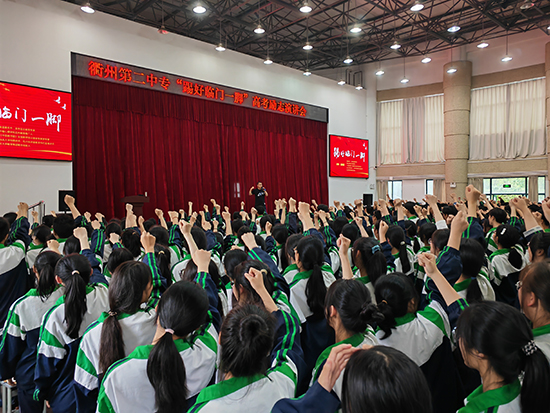 在距離高考30天的備考關(guān)鍵時(shí)刻,為幫助高三考生緩解考前壓力,做好心理調(diào)適,以最佳狀態(tài)備戰(zhàn)高考。5月5日下午,衢州第二中等專業(yè)學(xué)校邀請(qǐng)全國著名中、高考勵(lì)志教育專家、積極心理學(xué)和正向教育推廣人、《中國教師報(bào)》全國教師培訓(xùn)基地專家團(tuán)專家、汕頭大學(xué)特聘講師、杭州銘師堂教育特約金牌講師、北大邦教育集團(tuán)聯(lián)合創(chuàng)始人徐躍斌老師來校舉行了一場以“踢好臨門一腳”為主題的勵(lì)志講座,全體高三學(xué)子、班主任、任課教師齊聚一堂,共同聆聽徐老師的暢談,并肩吹起沖鋒的號(hào)角。