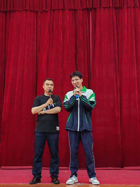 徐老師說:“目標(biāo)沒有高低,夢想沒有貴賤。”他鼓勵(lì)同學(xué)們將自己的高考目標(biāo)寫在紙上,大膽地走上舞臺(tái)并大聲地說出理想大學(xué)以及分?jǐn)?shù),并號(hào)召在場的全體師生一起為臺(tái)上同學(xué)吶喊鼓勁。同時(shí),他也建議同學(xué)們將制定的目標(biāo)“數(shù)字化、視覺化、公開化”,隨時(shí)激勵(lì)自己。