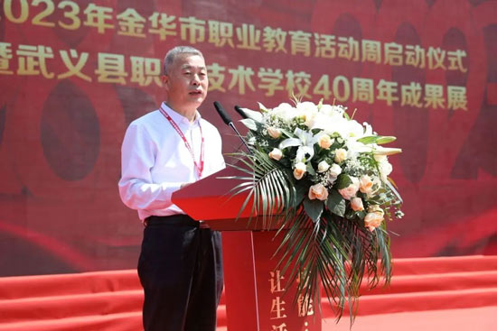 5月9日,2023年金華市職業教育活動周啟動儀式暨區域中高職一體化專題論壇在武義縣職業技術學校召開。浙江省教育科學研究院副院長程江平,金華市教育局黨組成員葉志林,武義縣人民政府副縣長楊柳,金華市婺劇促進會副會長兼秘書長許加燮出席啟動儀式。