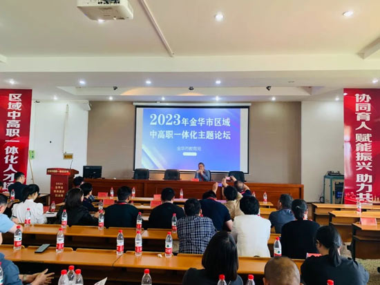開幕式結束后,召開了金華市職業教育區域中高職一體化專題論壇。圍繞“協同育人,賦能振興,助力共富”主題,永康市職業技術學校、浙江商貿學校、金華市第一中等職業學校、義烏市城鎮職業技術學校、金華職業技術學院等5所職業院校分享區域中高職一體化做法和經驗。程江平詳細講解中高職一體化發展的理念、思路與策略,并為金華中高職一體化建設提出可行性建議。