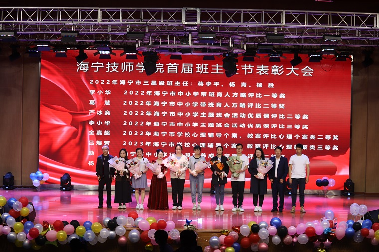 活動中,表彰了海寧市級以上獲獎班主任和校十佳班主任。校領導、系部主任為老師們送上鮮花和榮譽證書。