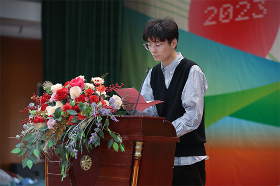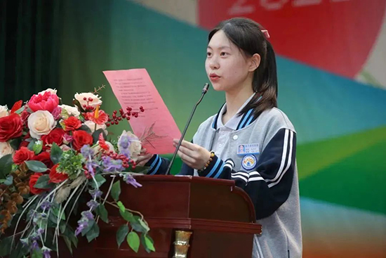 幼兒保育222班張卓晗同學代表全體參賽選手表達了他們不斷努力的決心以及敢于上場的信心。