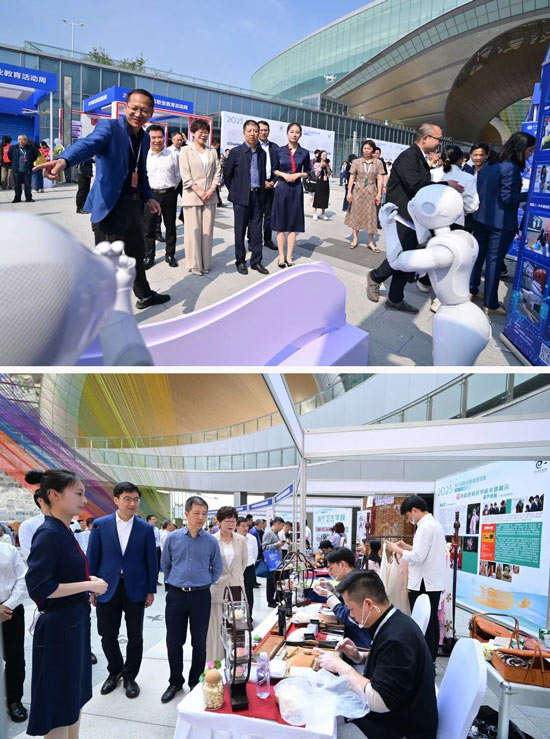 ▲浙江省教育廳黨組成員、副廳長于永明一行蒞臨嘉興技師學院職業體驗展位和非遺特色展位