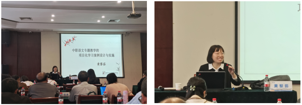 溫州市中職語文教研員黃黎茹老師以“中職語文專題教學的項目化學習案例設計與實施”為題,帶領老師們明確了項目化學習方式的含義,強調(diào)項目化學習方式是符合中職語文課程標準要求和當前教學改革的趨勢的,并分享了詩詞、小說、散文和微寫作四個項目化案例,為老師們后續(xù)項目化教學的開展提供了清晰的實施路徑。