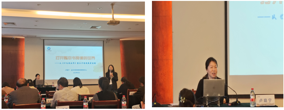 金華市中職語文教研員盧曉寧老師結合實際案例,做了題為“整本書閱讀教學——打開整本書閱讀的世界”的講座。盧老師從整本書閱讀課標之“綱”、學生自主閱讀之“門”、教師閱讀教學之“要”、整本書閱讀評測之“法”、整本書閱讀教學之“四”五個方面展開分析,以《平凡的世界》整本書閱讀為例,重點分享了搭建閱讀支架、設計閱讀專題、創(chuàng)建交流平臺的教學策略。