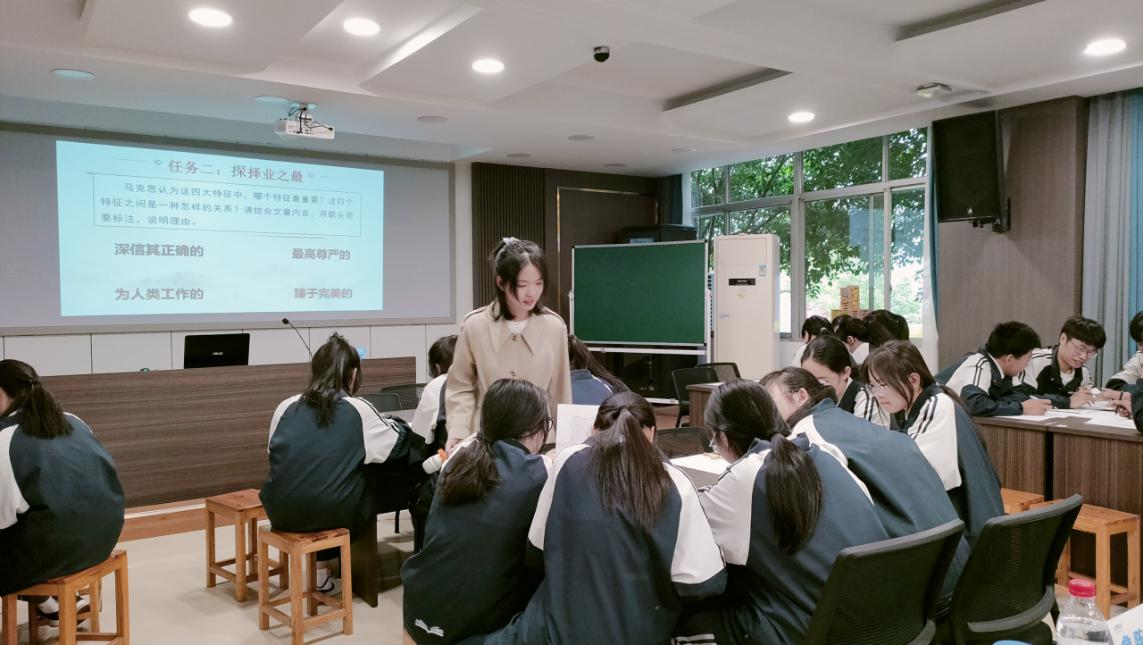 松陽職業(yè)中專潘夏敏老師執(zhí)教《出以公心,謀在事業(yè)》一課,她以“學校職·心社決定開展關于‘青年在選擇職業(yè)時的考慮’話題貼吧”為情境,以貼吧留言為任務,驅(qū)動學生對比閱讀《青年在選擇職業(yè)時的考慮》《簡單堅持,傻傻等待》兩文,解答青年“擇業(yè)之惑”,探究作者眼中的“擇業(yè)之最”。課堂最后,潘老師以“偉大”與“平凡”之辨,并結合愛崗敬業(yè)的中職生實例,啟發(fā)學生思考并得出結論“為人類工作,其實就是出以公心,為人工作。”