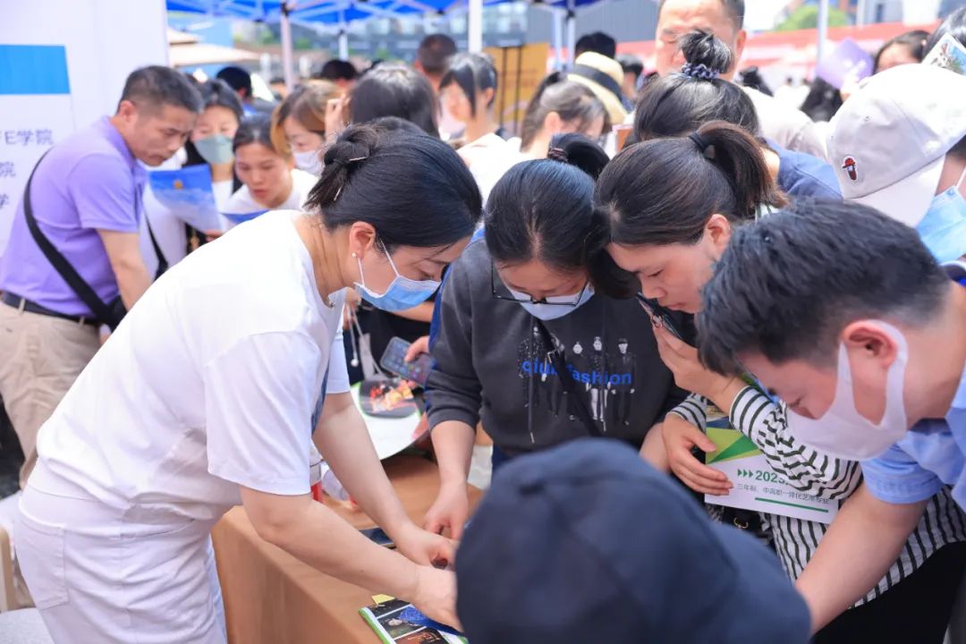 對于將要報考職業學校的初三、高三考生來說,挑選自己心儀的學校和專業是頭等大事。5月14日,2023年寧波市職業教育活動月啟動儀式暨招生咨詢活動在天一廣場舉行。這場活動,從早上9點半持續到下午3點,足足五個半小時,完全可以用“火爆”來形容,會場內人山人海,各個學校展位前都排起了長隊。中高職院校招辦負責人面對面答疑,并就學校招生計劃、專業設置、優勢專業進行介紹。寧波市教育局專設了咨詢臺,就家長關心的招生政策、志愿填報、錄取規則等進行權威解答。