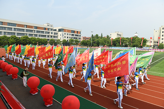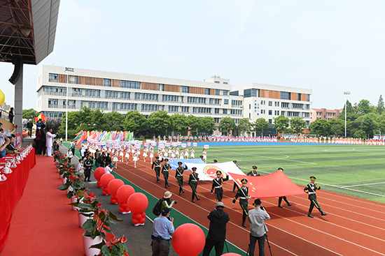 在莊嚴的國歌聲中,運動會拉開序幕。銅管樂隊的同學們為與會嘉賓演奏了渾厚雄壯的樂曲《歡樂頌》《人民英雄向前進》,為會場營造了斗志昂揚的運動氛圍;禮儀隊、彩旗隊的同學們統一著裝,精神抖擻地走過主席臺,向大家展示實中學子的青春模樣;還有志愿者們提供貼心的服務,為大家指路,搬運道具,成為會場上一道亮麗的風景線。