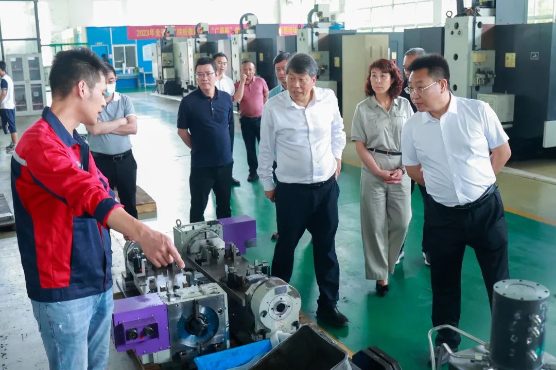 參觀了國際會展中心的世界五金精品館后,考察團(tuán)隨即前往五金產(chǎn)業(yè)技能人才培養(yǎng)基地:永康職技校、永康五金技師學(xué)院。在學(xué)校的產(chǎn)學(xué)研中心,眾人走訪了實驗室、車間、技術(shù)研發(fā)中心等區(qū)域,校領(lǐng)導(dǎo)王鐘寶、吳勇、胡贊等向來賓介紹了學(xué)校發(fā)展現(xiàn)狀、人才培養(yǎng)模式、產(chǎn)教融合成果與“東遷西歸”項目推進(jìn)現(xiàn)狀。