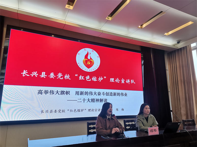 長(zhǎng)興縣委黨校“紅色熔爐”理論宣講隊(duì)的成員練梅給大家?guī)?lái)了一場(chǎng)深刻的思政培訓(xùn) 《高舉偉大旗幟 用新的偉大奮斗創(chuàng)造新的偉大——二十大精神解讀》。她重點(diǎn)以中國(guó)式現(xiàn)代化全面推進(jìn)中華民族偉大復(fù)興等方面,對(duì)黨的二十大精神進(jìn)行全面系統(tǒng)深入的宣講解讀,號(hào)召教師們不忘教育初心,切實(shí)將學(xué)習(xí)黨的二十大精神轉(zhuǎn)化為推進(jìn)教育高質(zhì)量發(fā)展的強(qiáng)大動(dòng)能。