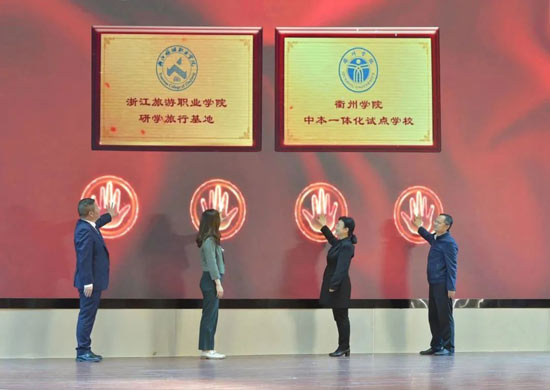 儀式上,還對衢州學院中本一體化試點學校和浙江旅游職業學院研學旅行基地進行揭牌。中本一體化試點學校的獲批是衢州市在推進中高職銜接、加強中高職貫通培養,加快建設現代職業教育體系,適應地方產業轉型升級和結構調整需求方面再次邁出了堅實一步。在全面對接全域旅游產業,深化“旅游+”專業群建設的當下,浙江旅游職業學院研學旅行基地落地衢州旅游學校,為推進該校旅游高水平專業建設搭建了新平臺,也為當地全域旅游發展提供了新賦能。